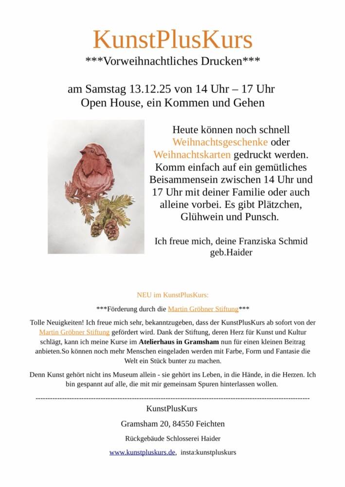 Vorweihnachtliches Drucken mit Plätzen und Glühwein in Gramsham - kostenfrei!